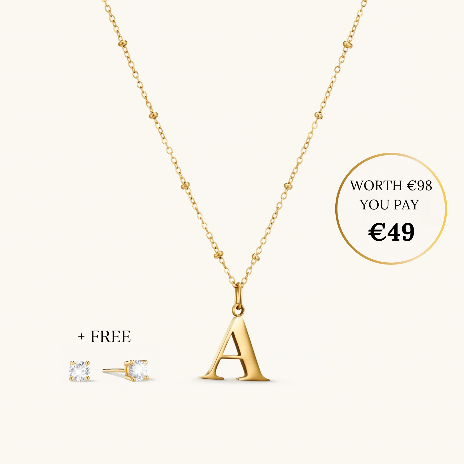 A Initial Pendant Necklace + FREE Diamond Studs Gold